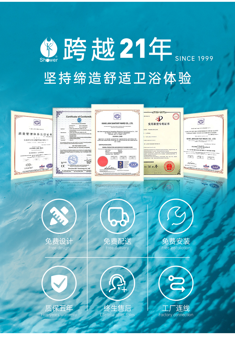 • 設計理念:弧形淋浴房以其大洋洲的雄偉壯麗姿態,巍巍立于高聳的云間,從拉桿到拉手、合頁都用靚麗的光澤和搭配合理的結構,詮釋了登頂的高貴氣質和典雅的華貴氣息,有如浴室中的穿云鐵索,吸納著萬千視野。